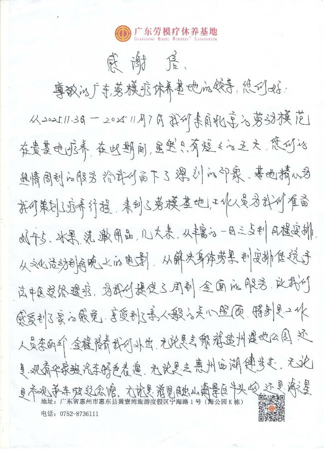 初冬的南国,海风送爽,暖阳如春。北京市总工会组织30余位首都劳模及工会代表赴惠州疗休养活动,今天在美丽的广东劳模疗休养基地圆满落幕。在上级指示精神的指导下,劳模基地精心策划五天的行程,融“红色+生态+文化”熏陶教育于一体,为劳模打造了一场讲政治、有特色、有温度、有深度的专属体验。