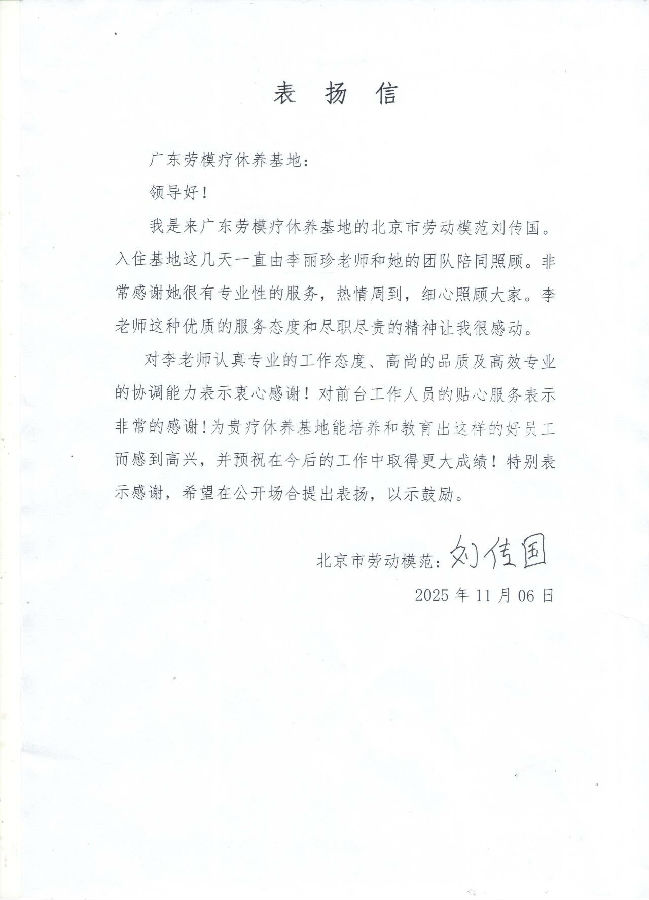 此次疗休养,不仅是对劳模辛勤付出的崇高致敬,更饱含工会组织对劳动者的深切关怀,让每位劳模在身心放松中汲取了前行力量。未来,他们将带着这份感动与激励,继续在岗位上发光发热,书写更多无愧于时代的劳动华章!