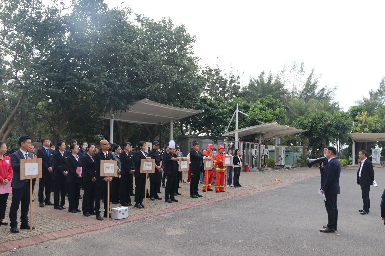 下午3:00,劳模基地联合惠东县平海消防救援站开展消防应急演练,劳模基地潘文光总经理作演练前动员讲话。潘总强调,安全是基地发展的生命线,是保障劳模职工疗休养体验的核心前提。开展此次消防应急演练意义重大,全体员工要高度重视,以“实战”心态投入演练,增强消防安全意识,筑牢守护自身、守护劳模职工、守护基地的安全防线。